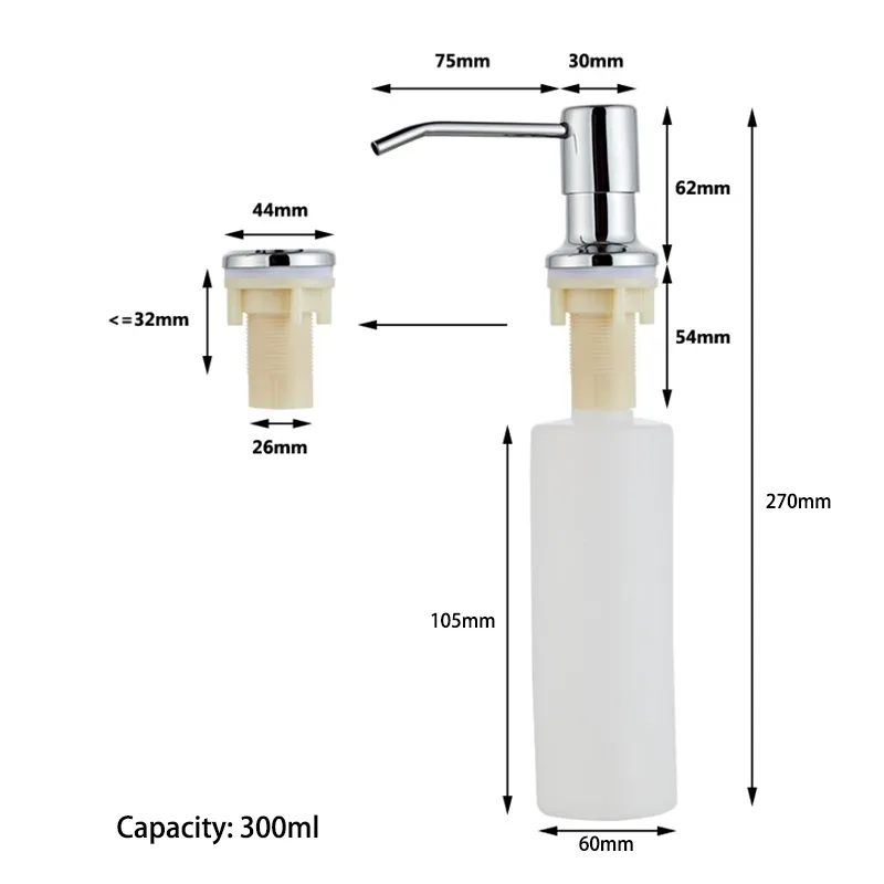 Material: Stainless Steel Brushed Nickel Capacity: 300ml Liquid Soap Bottle